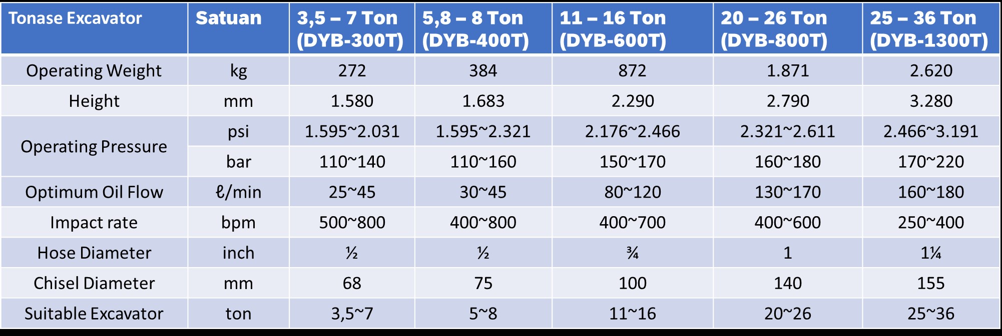 Here is the top type series of hydraulic breakers which is provided by PT Istana Berkat Sejahtera